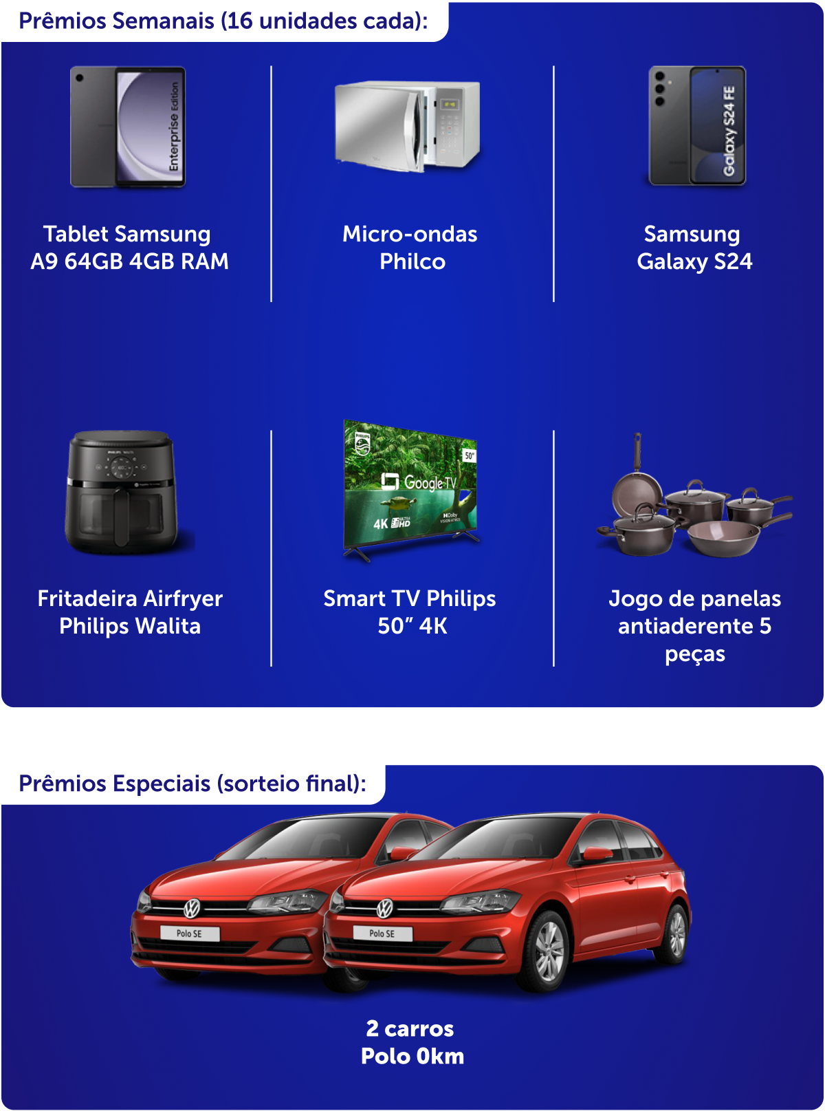 Consulte os termos de participação, datas dos sorteios e regulamentos completos no site. Imagens ilustrativas.